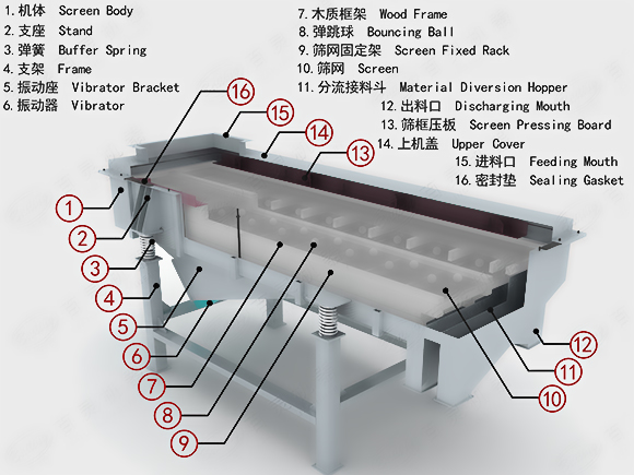 3、篩子橫梁與篩箱采用高強度螺栓聯接,無焊接。